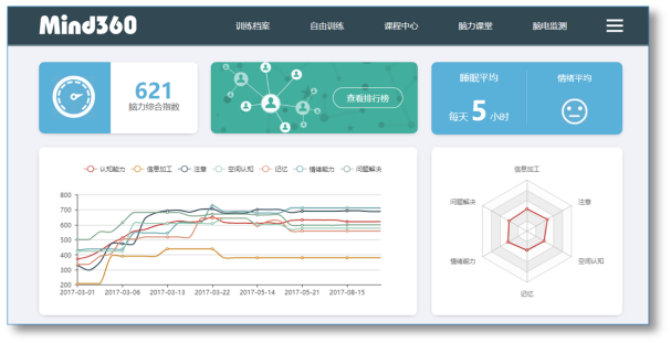 视友科技大脑360在线训练平台(认知力随时间变化统计表)