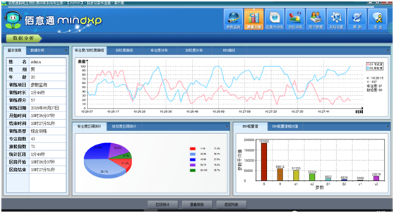 脑电生物反馈疗法采用了佰意通训练分析系统进行训练及测评。佰意通训练分析系统的原理是基于生物反馈技术,使用CUBand便携式脑波设备作为前端脑电测量设备,该设备将采集点放在左前额位置采集脑电数据,参考电极触点放置在耳部,可实时获取被试者的脑电数据以及反映测试者心理状态的多项参数,包括原始脑波的δ、θ、α、β、γ 波共八个 EEG 参数和注意力、放松度情感参数等。
