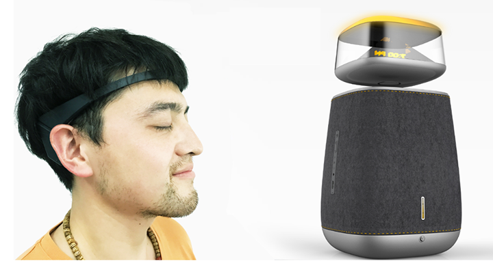 年轻的白领正在跟着Ego正念脑波舱练习与情绪相处