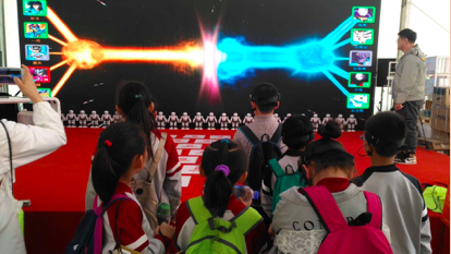 在视友科技的脑科学区,脑波闪电侠赛台前排起了学生长队