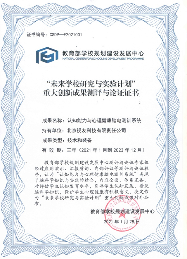 通过教育部CSDP认证的“认知能力与心理健康脑电测训系统”