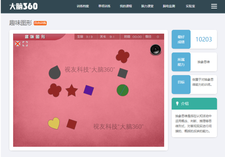视友科技“大脑360” 中的抽象思维认知能力训练项目——趣味图形