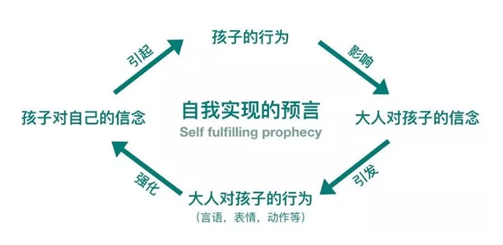 罗森塔尔认为,孩子们的进步来自于一种叫做「自我实现的预言」(self fulfilling prophecy)的机制——当学霸组的孩子发现老师真诚地认可、赞赏他的能力的时候,他也相信自己真的很出色,于是也更愿意努力,更有自信,智商得到了提高。